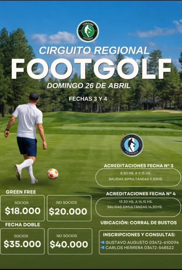 Golf Sporting Club, Corral de Bustos - 26/04/2026 - Fecha 3: Acred.8:30 a 9:15 Hs - Inicio 9:30 Hs // Fecha 4: Acred.13:30 a 14:15 Hs - Inicio 14:30 Hs